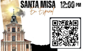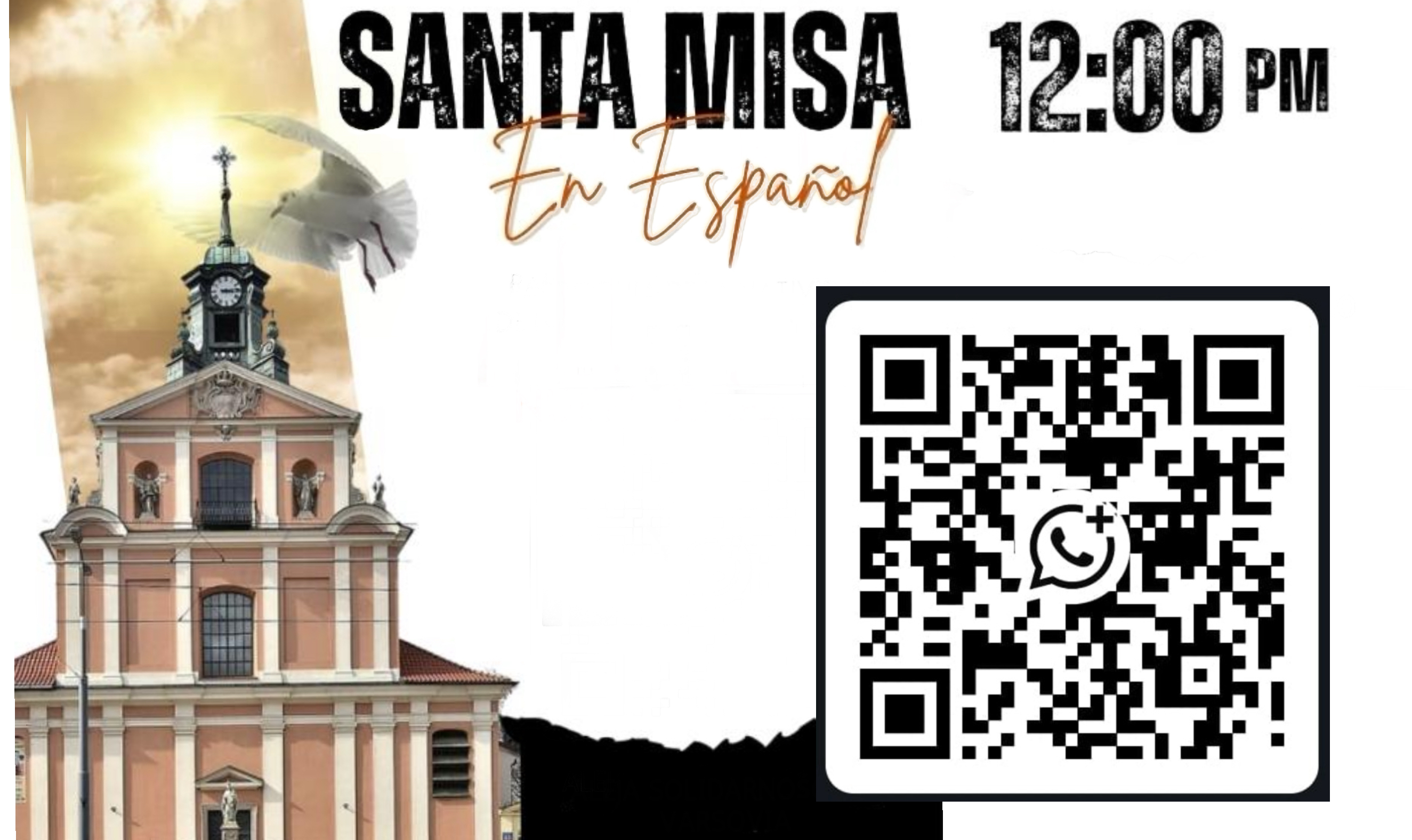 La Santa Misa se celebra todos los domingos a las 12:00 en la iglesia principal.