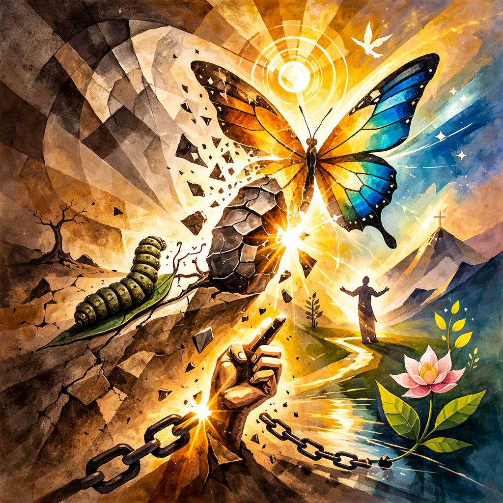 Pomyślmy o przemianie, która dokonuje się w naturze. Gąsienica nie jest piękna. Pełza po ziemi, jest mała i krucha, czasem nawet odpychająca. Nikt, patrząc na nią, nie powiedziałby, że kryje się w niej coś niezwykłego. A jednak przychodzi moment, kiedy zamyka się w kokonie. Z zewnątrz wydaje się, że nic się nie dzieje, jakby wszystko się zatrzymało. A tymczasem w środku dokonuje się wielka przemiana. I nagle z tej samej gąsienicy rodzi się motyl: lekki, piękny, zdolny do latania. Już nie pełza po ziemi, ale unosi się ku niebu. To ta sama istota, a jednak całkowicie przemieniona.